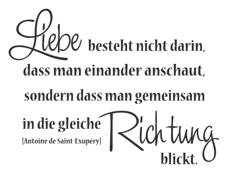 - Die Erfahrung lehrt uns, dass die Liebe nicht darin besteht, dass man einander ansieht, sondern dass man in die gleiche Richtung blickt.